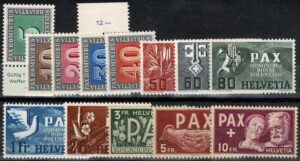 DESCRIÇÃO:SUIÇA - ◉ Yvert 405/417 (PAX) Série completa - nº 414 novo sem goma. Alguns baixos valores com pontos de ferrugem -...