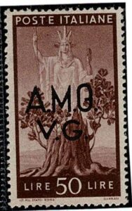 DESCRIÇÃO:** VENEZIA GIULIA(Ocupação Interaliada) Sassone 20N - Variedade: G de AMG fechado - 65 Euros....