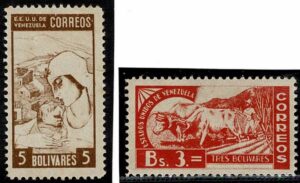 DESCRIÇÃO:* VENEZUELA - 175/181 (Bovino e outros temas) Série completa. Valor de 25c com adelgaçamento no canto inferior direito - 100 Euros....