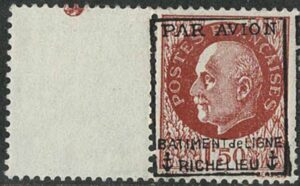 DESCRIÇÃO:2ª GUERRA ** Ano 1943 - FRANÇA - Selo Aéreo Naval - Yvert 3. Selo adendo a lateral sem impressão (vide imagem)...