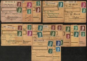 DESCRIÇÃO:2ª GUERRA - Anos 1943/1944 - REICH - Série do Fuhrer - Conjunto com 15 recibos de envio de pacote, todos selados...