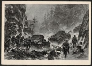 DESCRIÇÃO:2ª GUERRA - Ano 194? - REICH - Cartão Postal preto/branco, tipo ilustração, figurando tropas e tanques. Sem uso. Ótimo estado...