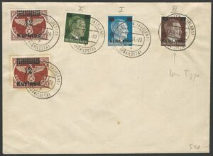 DESCRIÇÃO:2ª GUERRA - Ano 1945 - KURLAND - Envelope não circulado com série completa (Ocupação Completa) com carimbo: Paulshafen(Kurland) (Pavilosta) Todos expertizados...