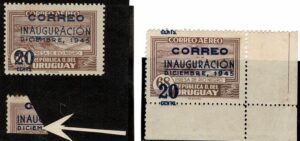 DESCRIÇÃO:BARRAGENS - * Uruguay - 1945 - Yvert 567 (Barragem Rio Negro) 2 selos com variedades na sobretaxa: deslocada verticalmente e falha...