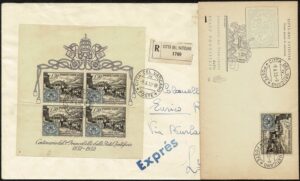 DESCRIÇÃO:Centenário do Selo - Ano 1952 - Vaticano - 2 Fdcs: Yvert 173 (não circulado e com data errada de 1953) e...