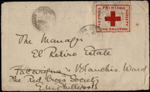 DESCRIÇÃO:CRUZ VERMELHA - TRINIDAD - Ano 1914 - Envelope impresso com selo Yvert 87A (Stanley Gibbons # 157) circulado internamente com chegada...