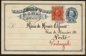 DESCRIÇÃO:COLOMBO - Costa Rica - Ano 1920 - Inteiro Postal tipo cartão, com facial de 2 centimos + selo regular, circulado para...