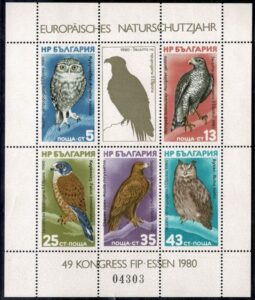 DESCRIÇÃO:FAUNA ** Bulgaria - 1980 - Yvert Bloco 95B (Aves de rapina) - 65 Euros....