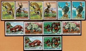 DESCRIÇÃO:FAUNA **/* Camarões - Ano 1962/1964 - Yvert 339/353 (Selvagens) Série completa sem picote. 5 selos sem goma......