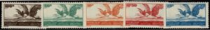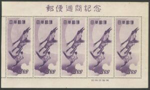 DESCRIÇÃO:FAUNA **/* Japão - Ano 1949 - Yvert 437 (Patos Selvagens) Folha completa com 5 exemplares. Selos **, parte das margens com...