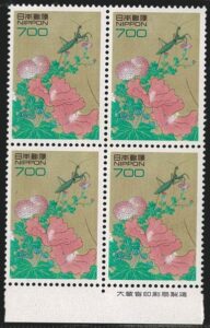 DESCRIÇÃO:FAUNA ** Japão - Ano 1995 - Yvert 2193 (Inseto) Quadra margem de folha - 2.800 Yens de facial = R$ 140...