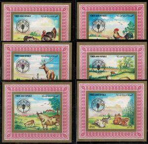 DESCRIÇÃO:FAUNA ** Iemen (Republica Arabe) - 1982 - Aéreos 190/195 (domésticos) em 6 mini blocos individuais - Não consta no Yvert e...