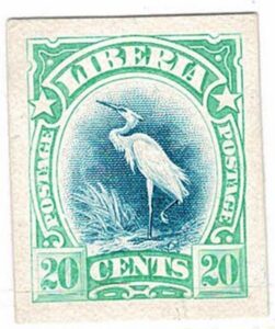 DESCRIÇÃO:FAUNA (*) Libéria - Ano 1906 - Yvert 89 (Ave) PROVA de cor sem picote e em papel cartonado, tipo couchê...