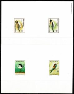 DESCRIÇÃO:FAUNA ** Marrocos - 1990 - Yv 1086/7 (Aves) Série picotada + sem picote + espécie de prova da firma impressora (H....