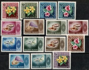 DESCRIÇÃO:FAUNA ** Maldivas - Yv 172/186 (Aves/Conchas) - Série completa - Incluso Flora - 65 Euros...