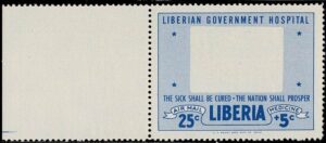 DESCRIÇÃO:MEDICINA ** Libéria - Ano 1954 - Selo Yvert Aéreo 54 com marcantes variedades: Falta das cores preta (centro do selo) e...