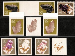 DESCRIÇÃO:MINERALOGIA ** Alemanha Oriental - Ano 1969 - Selos Michel 1468 e 1471 - Raro conjunto com 9 provas de impressão (fases)...