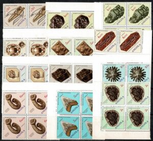 DESCRIÇÃO:MINERALOGIA ** Angola - Ano 1970 - Yvert 560/571 completo em quadras margem de folha. Incluso Fósseis - 60 Euros +...