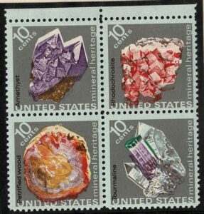 DESCRIÇÃO:MINERALOGIA ** Estados Unidos - Ano 1974 - Quadra, Yv 1025/1028, com visível deslocamento de parte das cores, lateralmente...