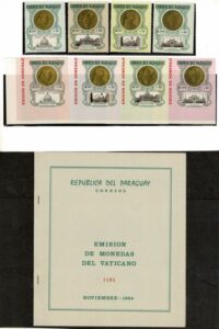 DESCRIÇÃO:**/* Numismática - Ano 1964 - Paraguai - Michel 1380/1383, Bloco 64 e 1388/1391 - Moedas do Vaticano. Formato vertical. Não consta...