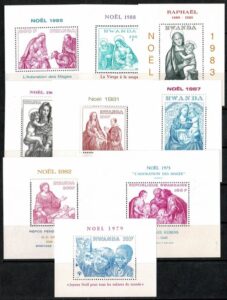 DESCRIÇÃO:NATAL (*) Ruanda - Anos 1975 a 1988 - Blocos Yvert 67, 84, 91, 92, 97, 98 e 101 a 103 -...