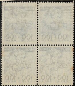 DESCRIÇÃO:NATAL (*) Brasil - Ano 1939 - Quadra selo RHM C146 (Reis Magos) e variedade: Transparência total....