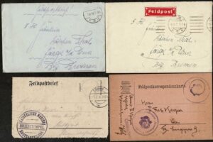 DESCRIÇÃO:1ª GUERRA - FELDPOST - Conjunto com 55 peças circuladas pelo Correio de Campanha, sendo 2 seladas (Austria e Italia) Alguns envelopes...