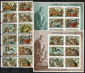 DESCRIÇÃO:** Pintura - Ano 1975 - Burundi - MICHELANGELO - Idem ao lote anterior, agora todos sem picote...