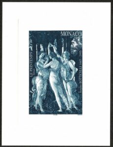 DESCRIÇÃO:PINTURA (*) Monaco - Ano 1995 - Yvert 2010 - Pintura "Primavera" de Boticelli. Prova em papel cartão no tamanho 13x10 cm...