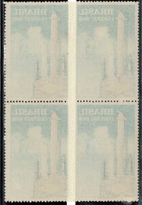 DESCRIÇÃO:PETRÓLEO (*) Brasil - Ano 1968 - Quadra selo RHM C610 com variedade: Transparência total da cor azul...