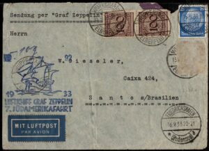 DESCRIÇÃO:ZEPPELIN - VOOS - Sieger 232Aa - Ano 1933 - Alemanha Reich - Envelope circulado para Santos com chegada todos os carimbos...