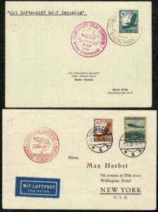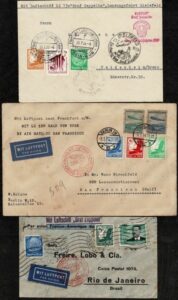 DESCRIÇÃO:ZEPPELIN - VOOS - Sieger # ALEMANHA REICH - Lote com 3 envelopes circulados, todos com chegada e com os carimbos alusivos...