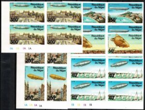 DESCRIÇÃO:ZEPPELIN - SELOS ** NIGER - Ano 1976 - Série completa Yvert 268/272 em quadras SEM PICOTE....