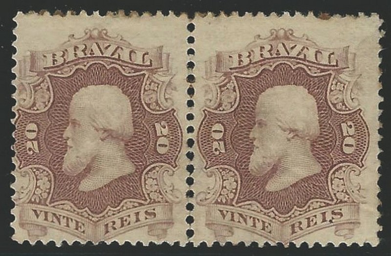 * 24a – 20Rs Castanho Carminado – Par horizontal com goma original e pontos de ferrugem – 360 UF