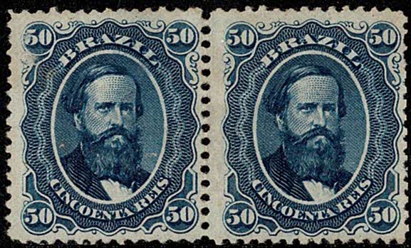 (*) 25 – 50 Réis – Par horizontal novo sem goma. Selo esquerdo com minimo ponto de luz. Picotes conforme imagem – 220 UF