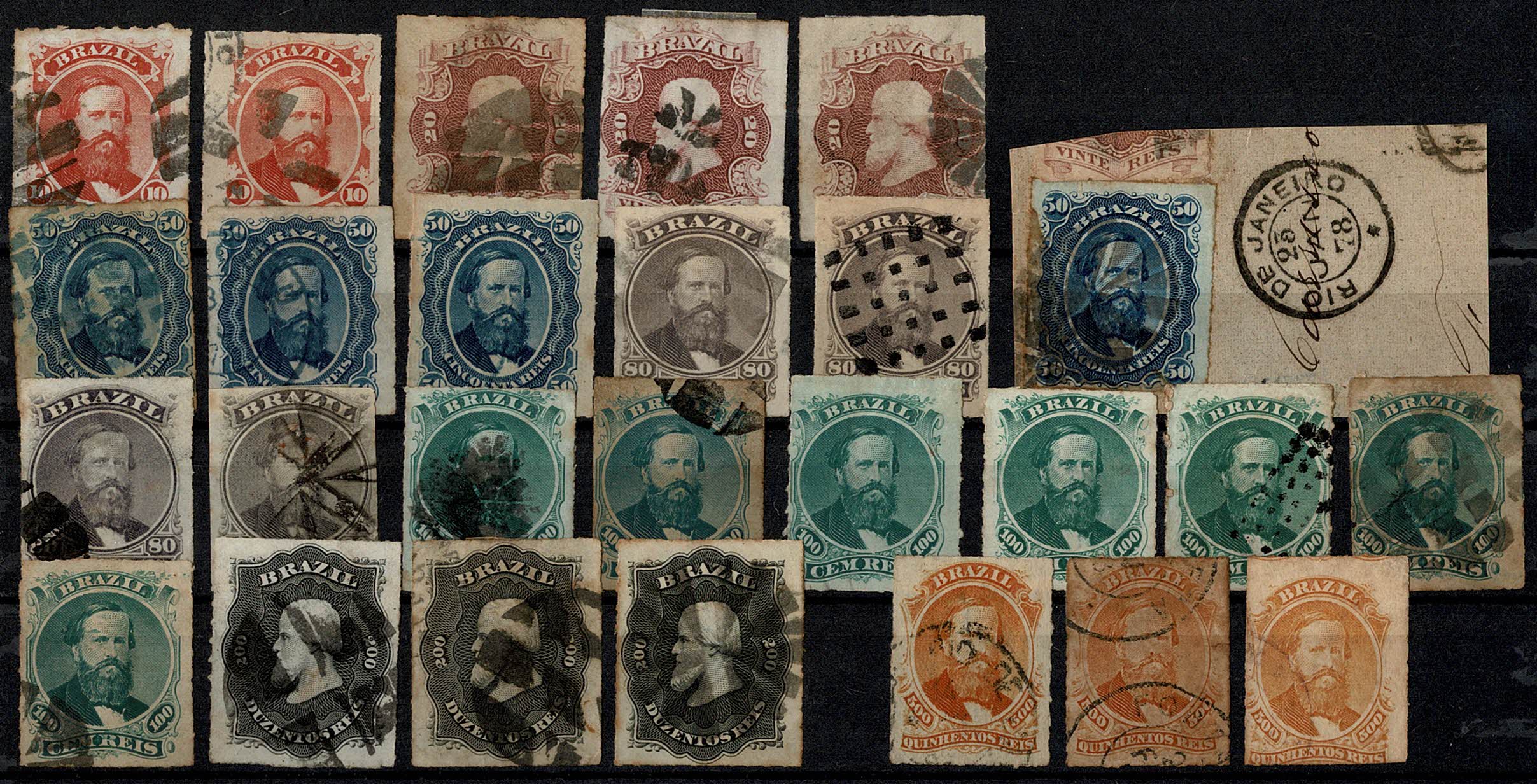 ◉ Cartela com 26 selos diversos, assim dividido: 10Rs x 2, 20Rs x 3, 50Rs x 4 (1 tintado) 80Rs x 4, 100Rs x 7, 200Rs x 3 e 500Rs x 3. Grande maioria perfeitos – 695 UF para perfeitos