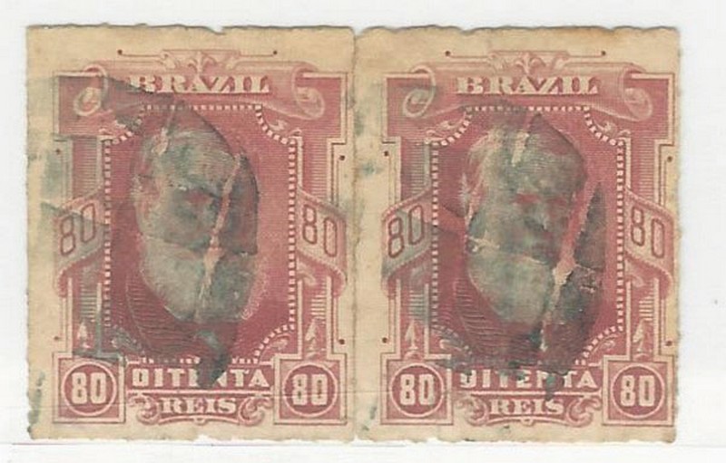 ◉ 40 – 80Rs – Par horizontal com carimbo mudo. Selo da direita com corte inferior (450 UF)