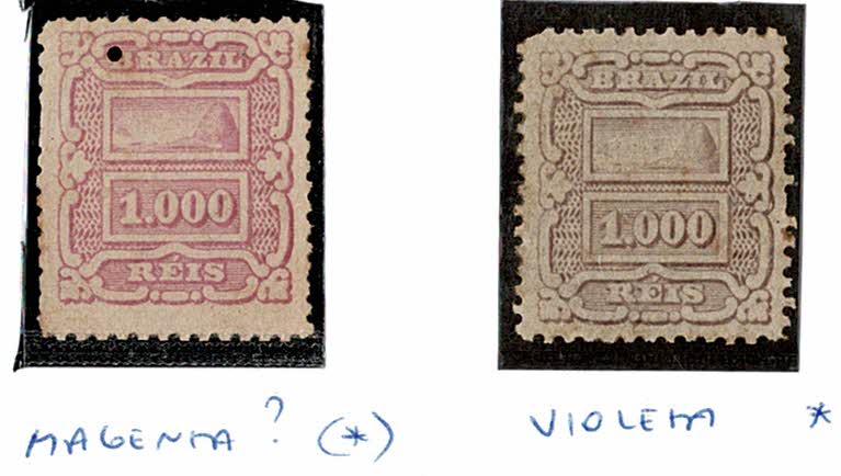 (*) 69 – 1.000Rs – 2 cores diferentes e ambos com senões: Magenta ? (furinho) e Violeta (picote direito irregular).
