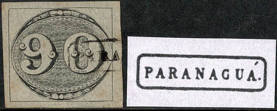 ◉ PARANAGUÁ – Selo 90Rs perfeito em tom um pouco acinzentado – REF P4 – Paulo Ayres 1384.