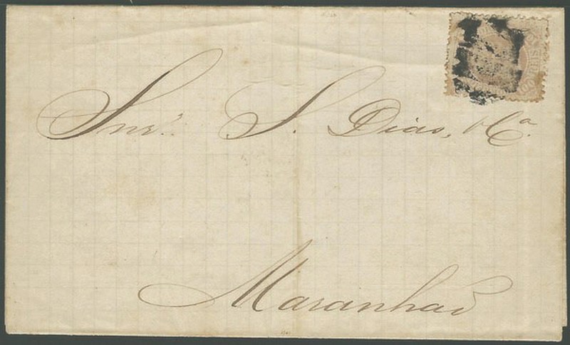 Ano 1884 – Sobrecarta circulada de ? para o Maranhão. Selo 58, com carimbo mudo ilegível – 560 UF