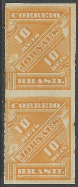 * 1SPH – 10Rs – Par vertical com falta total do percê horizontal. Duplo vinco horizontal basicamente entre os selos – 600 UF