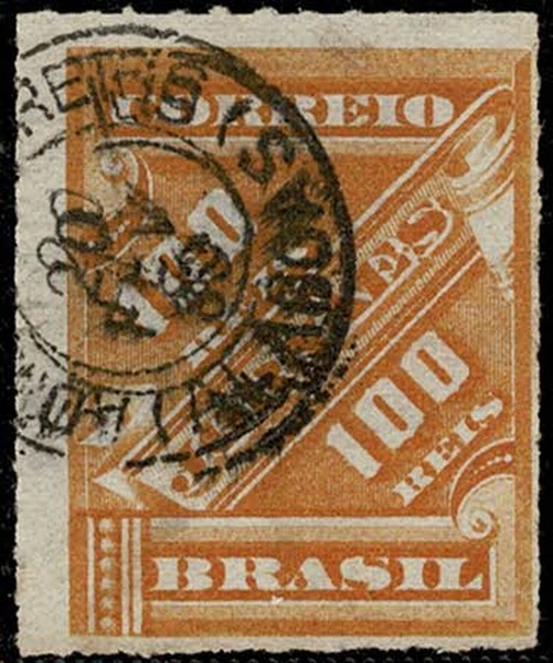 ◉ 4 – 100Rs Cifra Laranja. Carimbo do Adm. Alagoas 20.2.89 – Carimbo do mês da sua emissão que é bastante incomum.
