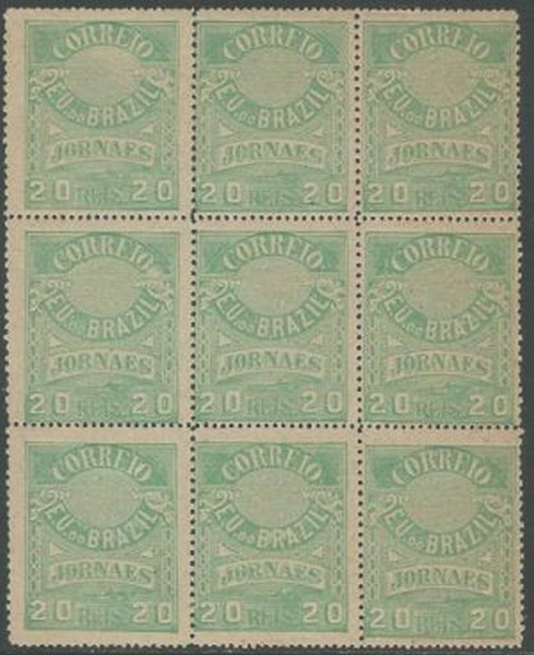 */** 23Ea – 20Rs – Impressão em relevo. Picote misto. Bloco de 9 (3×3) todos gomados e parte ** !! e outros só com leve charneira. 2.250 UF