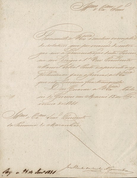 Ano 1851 – VISCONDE DO BOM CONSELHO – Documento endereçado ao Presidente da Província do Maranhão, com assinatura de José Bento da Cunha Figueiredo, na época, Presidente da Província de Alagoas (entre 1849 e 1851) Muito bem conservado.