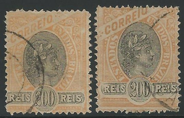 ◉ 85A – 200Rs – Picote fino – 2 exemplares usados – Um deles com vinco na parte superior – 440 UF
