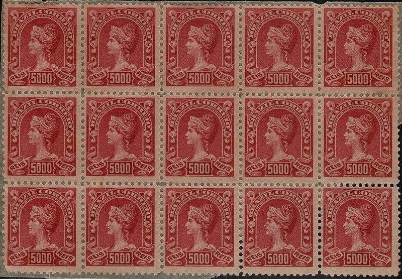 (*) 151 ou 151a ? – 5$000 Alegoria – Bloco de 15 selos (5×3) com aderência de papel celofane atrás – 750 UF .