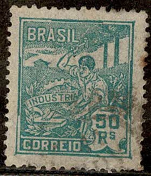 ◉ 188 (antigo) 50Rs Indústria – Filigrana Linha vertical, mas com ela dupla. Pontos de ferrugem.