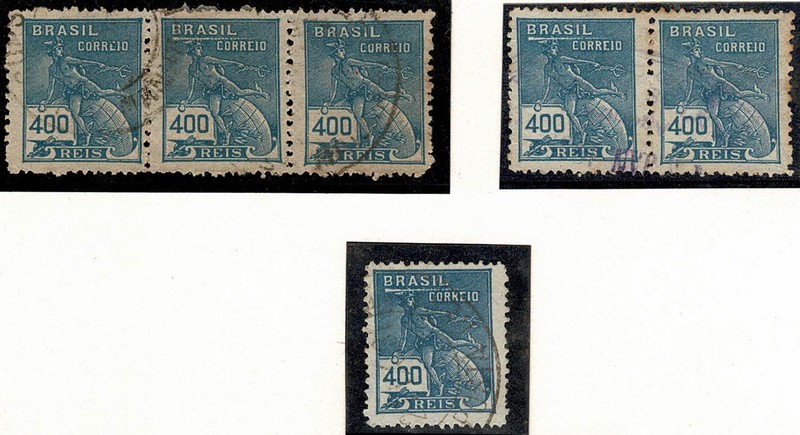 ◉ 203D – 400Rs – Chapa Riscada. 3 exemplares: Isolado, em par e trinca (nos múltiplos, 1 com a variedade ) – 90 UF
