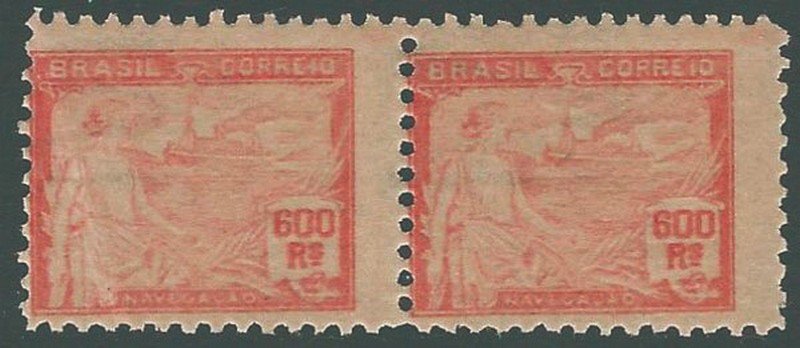 ** 205Fv (ano 1995) – 600Rs Navegação, filigrana vertical, papel fino – Par horizontal – 360 UF.