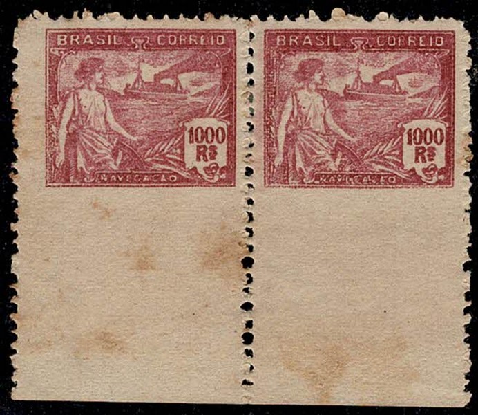 * 206v – 1.000Rs Navegação – Par horizontal, com falta total do picote inferior